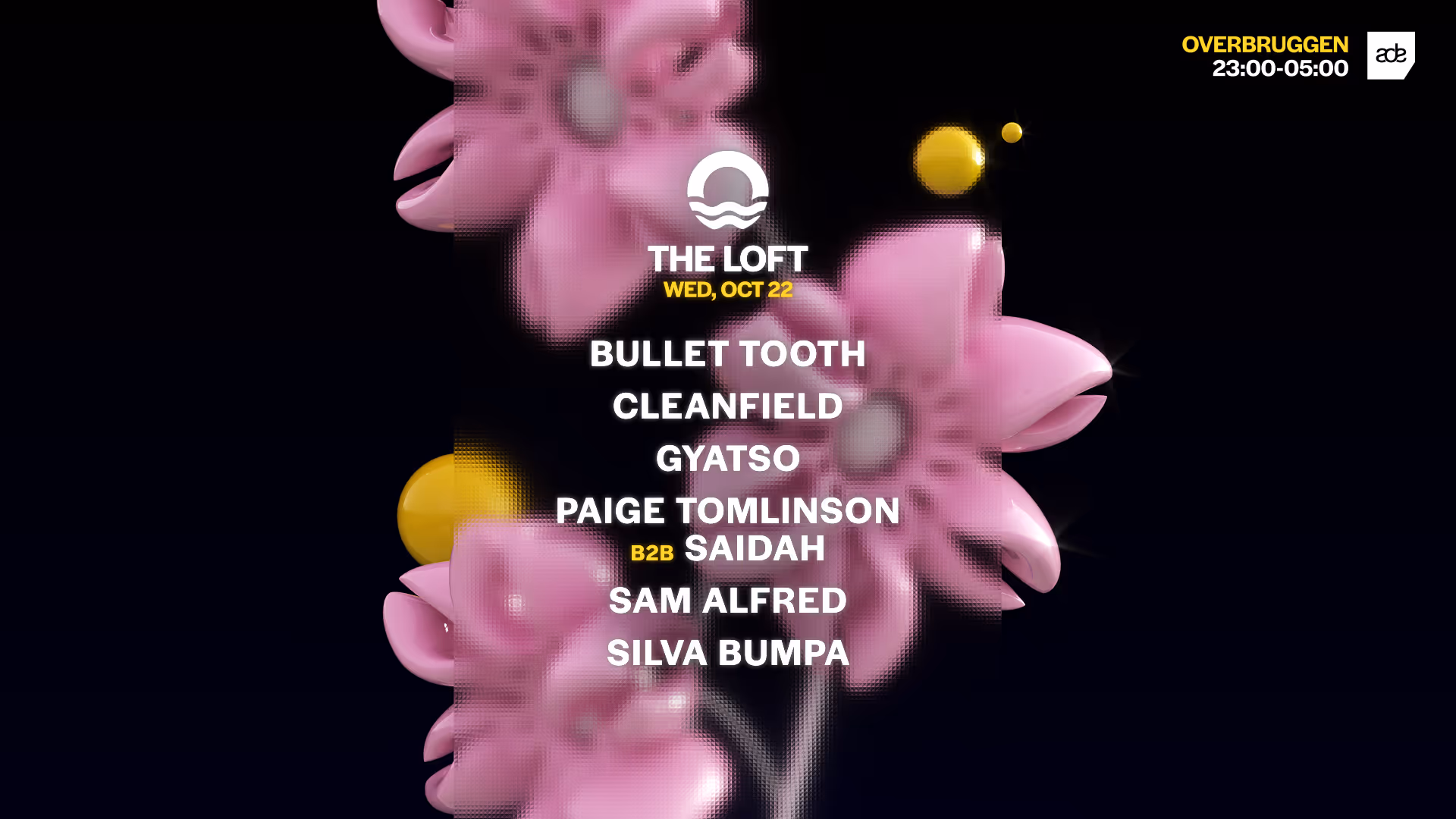 We’re back at one of Amsterdam’s most stunning venues, The Loft. Expect sky-high energy and a stacked lineup featuring Bullet Tooth, Cleanfield, Gyatso, Sam Alfred, Paige Tomlinson b2b SAIDAH, Silva Bumpa.